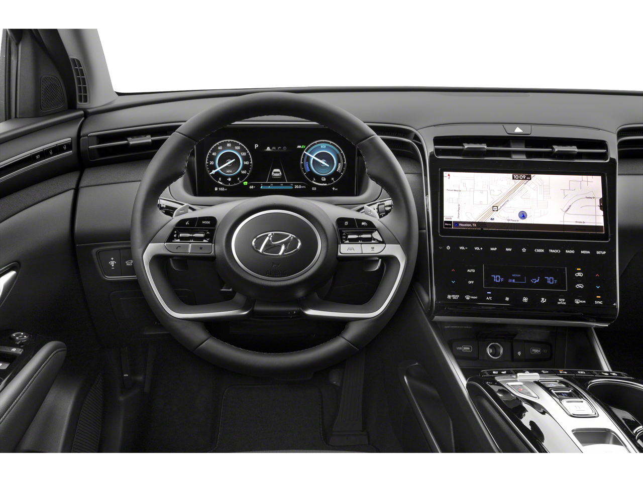 You'll never again be lost in a crowded city or a country region with the navigation system on the vehicle. This mid-size suv keeps you comfortable with Auto Climate. The Hyundai Tucson Hybrid features a hands-free Bluetooth® phone system. It offers Android Auto for seamless smartphone integration. This 2023 Hyundai Tucson Hybrid features a high end BOSE stereo system. The leather seats in the vehicle are a must for buyers looking for comfort, durability, and style. See what's behind you with the back up camera on the Hyundai Tucson Hybrid. Keep your hands warm all winter with a heated steering wheel in this unit . Never get into a cold vehicle again with the remote start feature on this model. This vehicle offers Apple CarPlay for seamless connectivity. Set the temperature exactly where you are most comfortable in this model. The fan speed and temperature will automatically adjust to maintain your preferred zone climate.